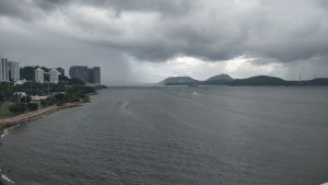 Today we visited Mummy’s friend Angela, and her boys Charlie, Ollie and baby Henry. It was fun to play with Charlie and Ollie and Mummy loved talking to Angela. They live in Pok Fu Lam. From their car park we could see a rain shower sweeping across the sea.