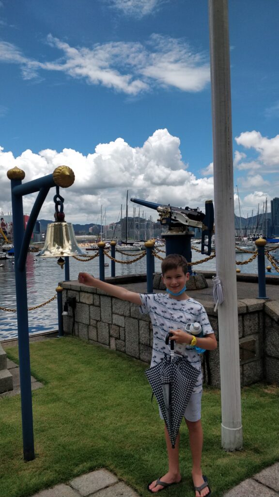 First, we went to see Mrs Guest for tea and orange squash, and to play with James and Lucy. James and Lucy used their roller skates and we used their scooters. We had a great time! We then went down into Causeway Bay to see the Noonday Gun. It was really cool and the bang was super loud!