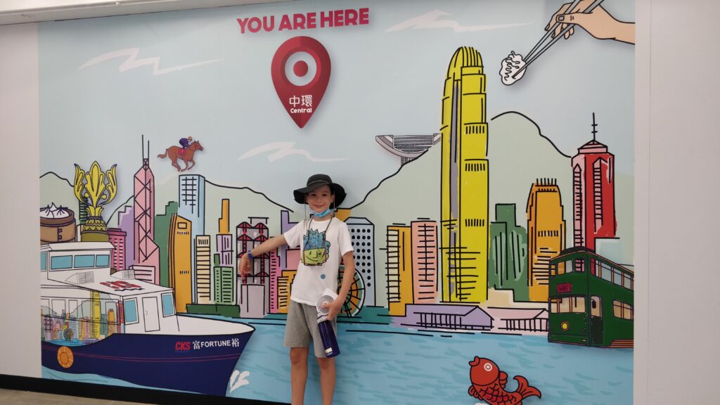 We walked from Hung Hom along the harbourfront to K11, which is a newish shopping mall. It’s quite different from most of the malls here and there are some interesting things to see. Today Mummy wanted to show us the Robotea shop – where robots make tea for you! It was pretty funny, especially when they dance.