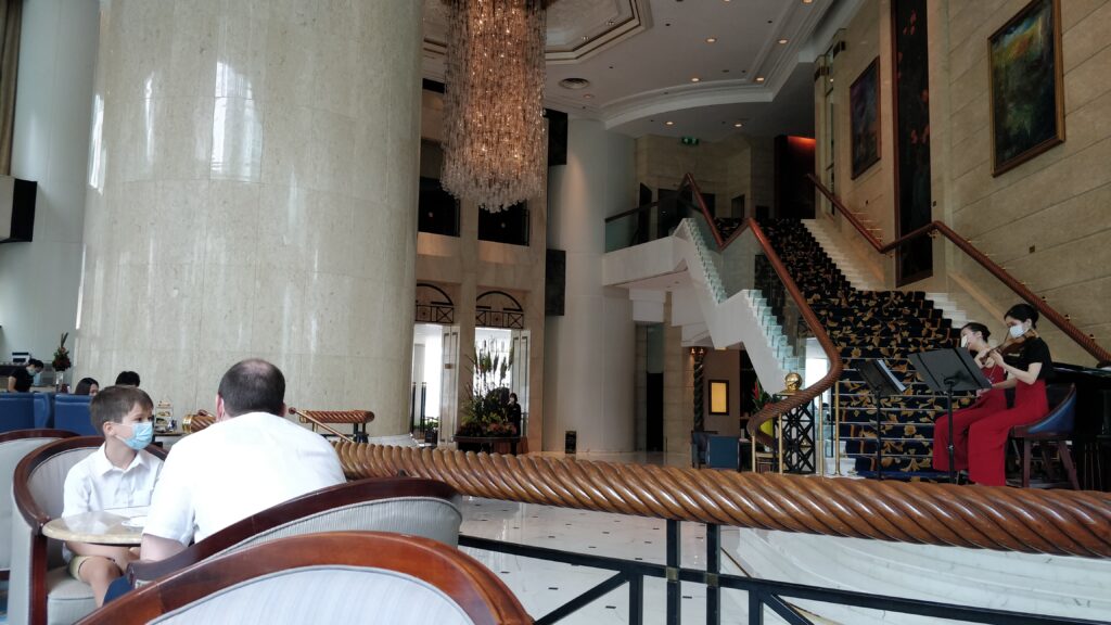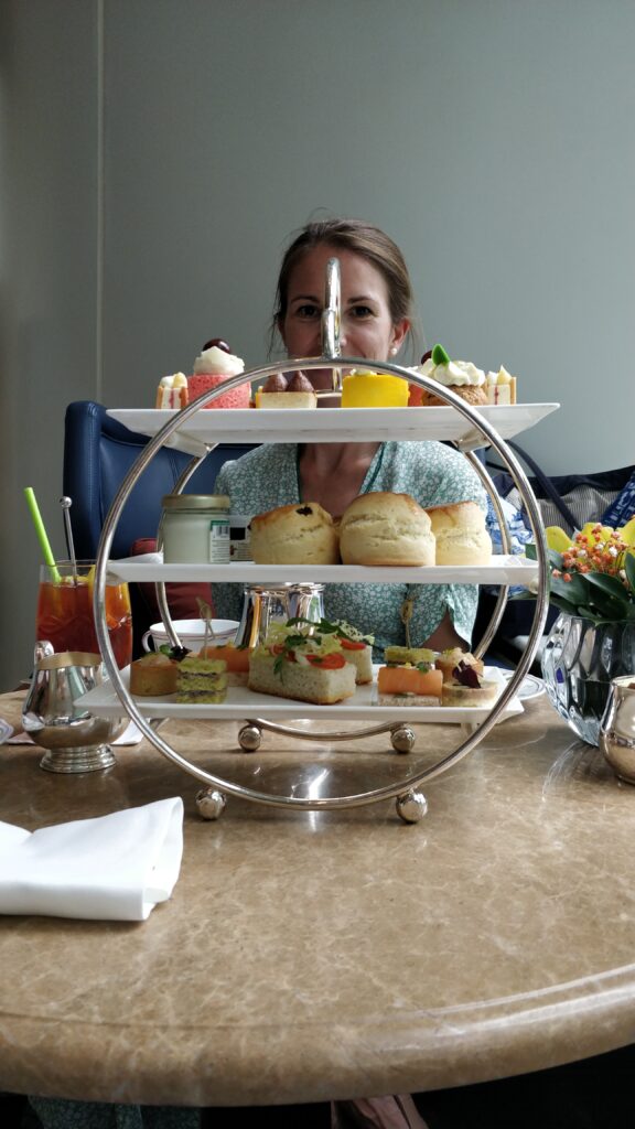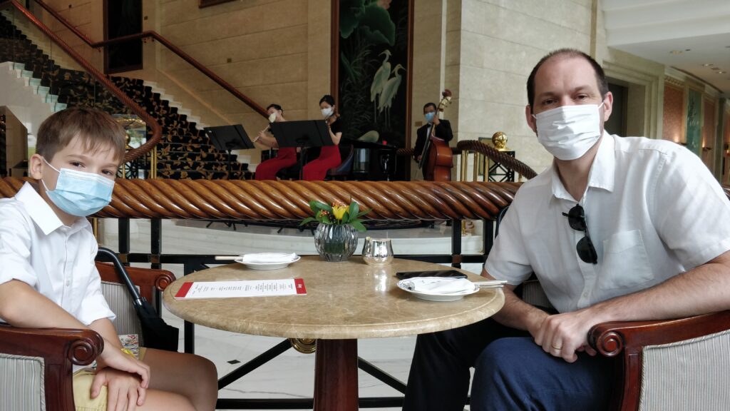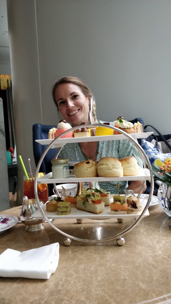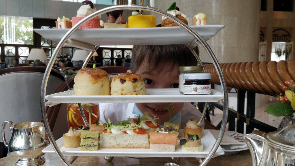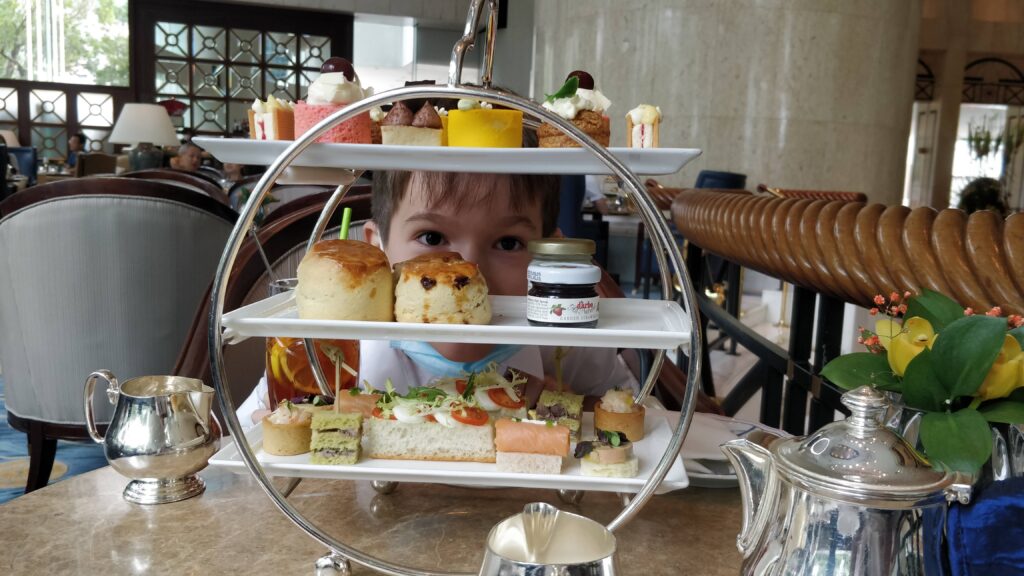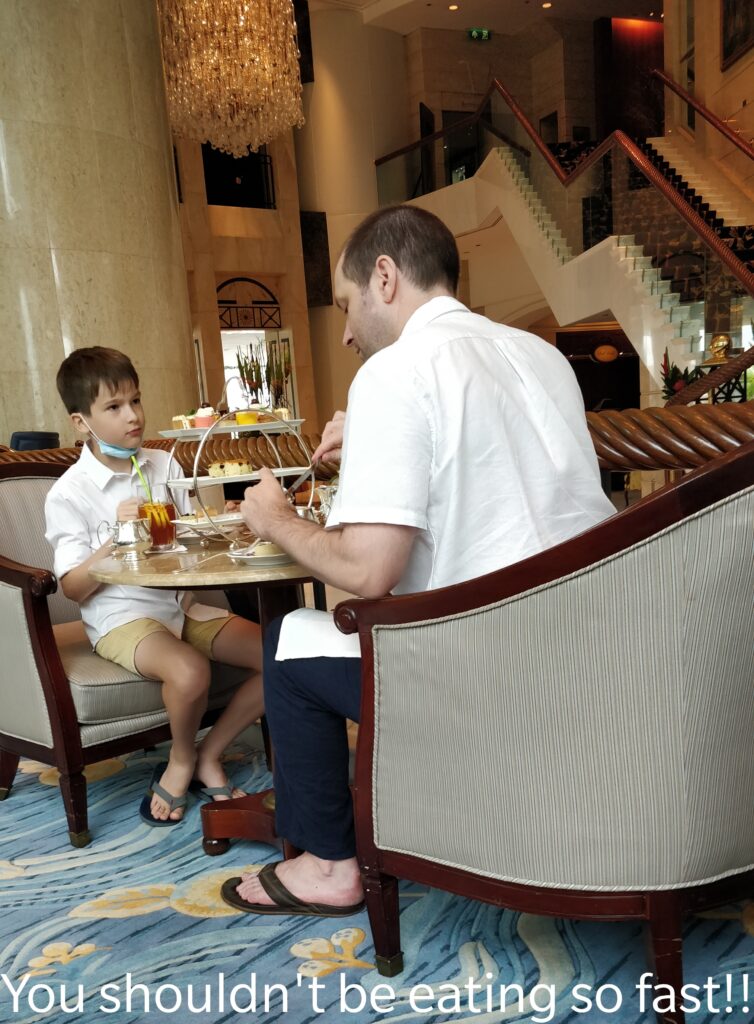Then we went to the Shangri-la Hotel to have afternoon tea with Mummy and Daddy! It was a very special treat. It was so yummy, but Daddy and Josh ate it all super fast and they had scones in the middle instead of at the end! (scones really fill you up you know.)
